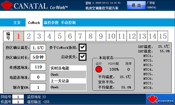 該系統(tǒng)通過為每個空調(diào)對應(yīng)區(qū)域都增設(shè)了網(wǎng)絡(luò)型溫濕度傳感器節(jié)點(每節(jié)點10通道),以采集機房整體溫度場數(shù)據(jù)。集控系統(tǒng)根據(jù)采集的數(shù)據(jù)對整個機房的空調(diào)設(shè)備參數(shù),溫度場分布進行綜合運算分析,整體調(diào)度機房內(nèi)所有空調(diào)的運行,均衡控制機房溫度場,提高整體運行效率,達到節(jié)能目的。