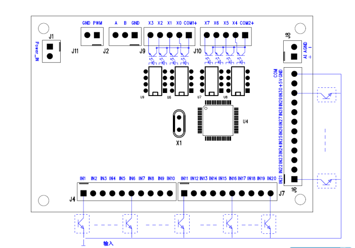 30路OC門輸入用于接入風(fēng)機(jī)轉(zhuǎn)速反饋。7路OC門輸出用于狀態(tài)輸出。